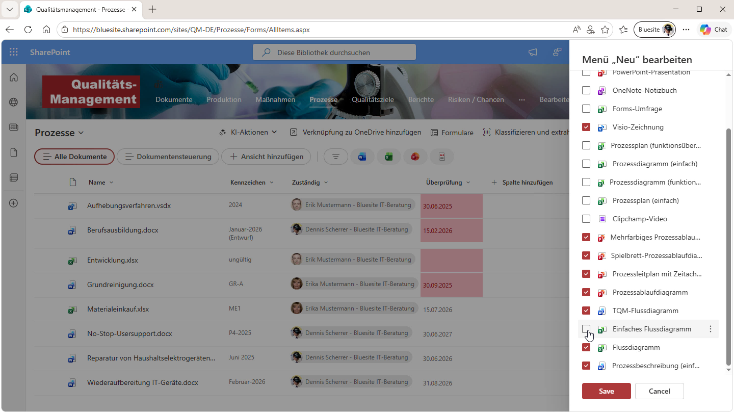 Wie Vorlagen für Qualitätsmanagement-Dokumentation in SharePoint-Bibliotheken geändert werden und worauf zu achten ist