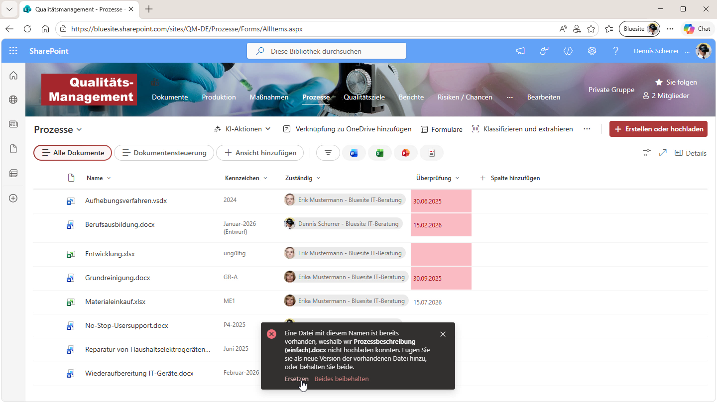 Bluesite IT-Beratung empfiehlt mit Ihrer SharePoint-Lösung für das Qualitätsmanagement mit Microsoft 365 mindestens drei Bibliotheken zu erstellen: