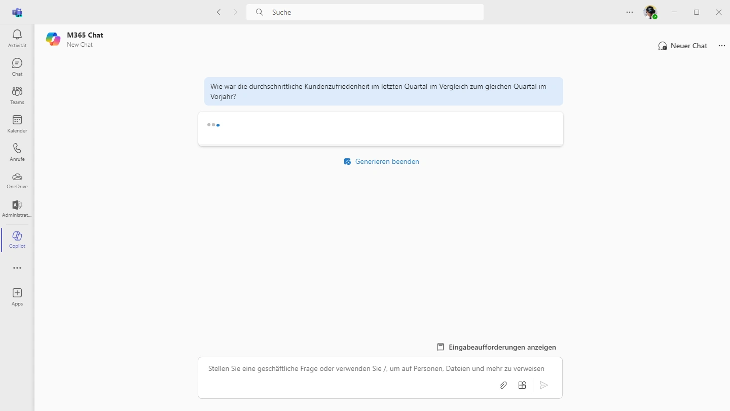 Da Sie mit Copilot Chatten, sollten Sie schnell mit allen 10 Fingern tippen können. Für QM-Beauftragte und QM-Berater sollte das kein Problem sein. Aber denken Sie daran, wenn Sie an die oberste Leitung berichten, bevor Sie vorschlagen, einfach selbst Copilot aufzufordern „Berechne mir den Durchschnitt aller Kundenbewertungen im letzten Quartal“.